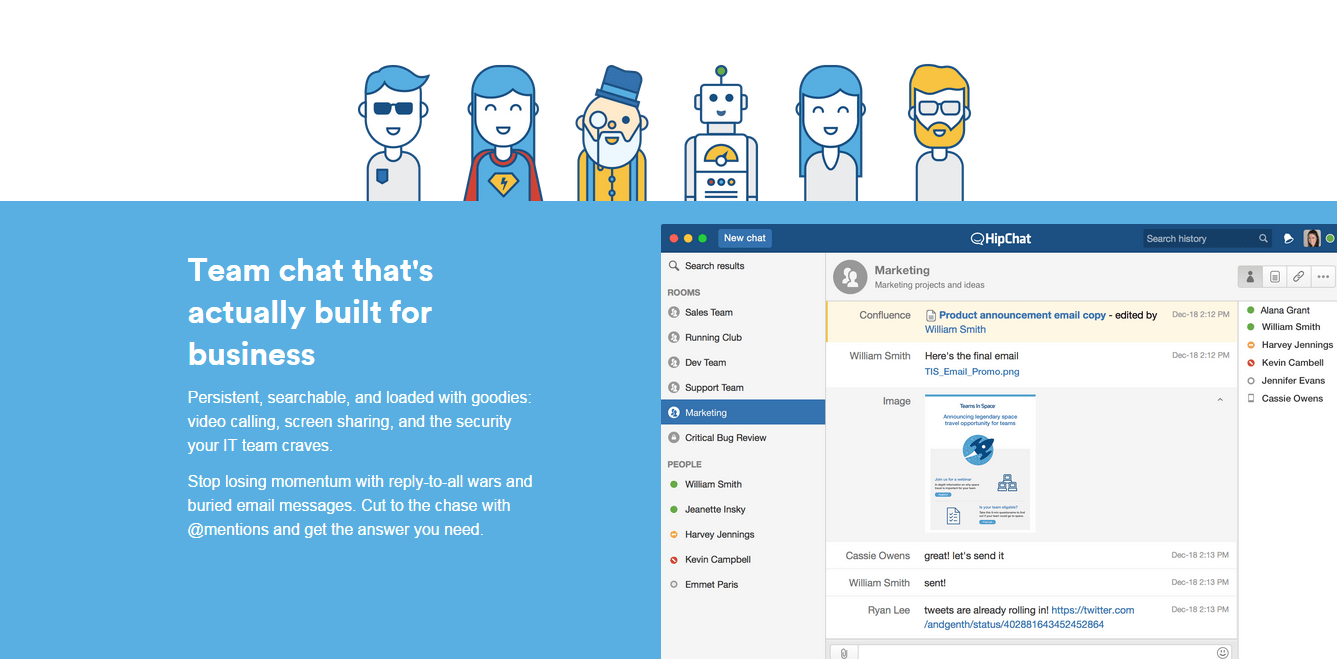 Jaconda: If you are looking for a classic team chat solution then Jaconda must be a fantastic choice. It is free for 30 days and it does have some costs associated with a paid account. However their services include a number of chatrooms with support for very large teams, think medium-to-large companies in size.