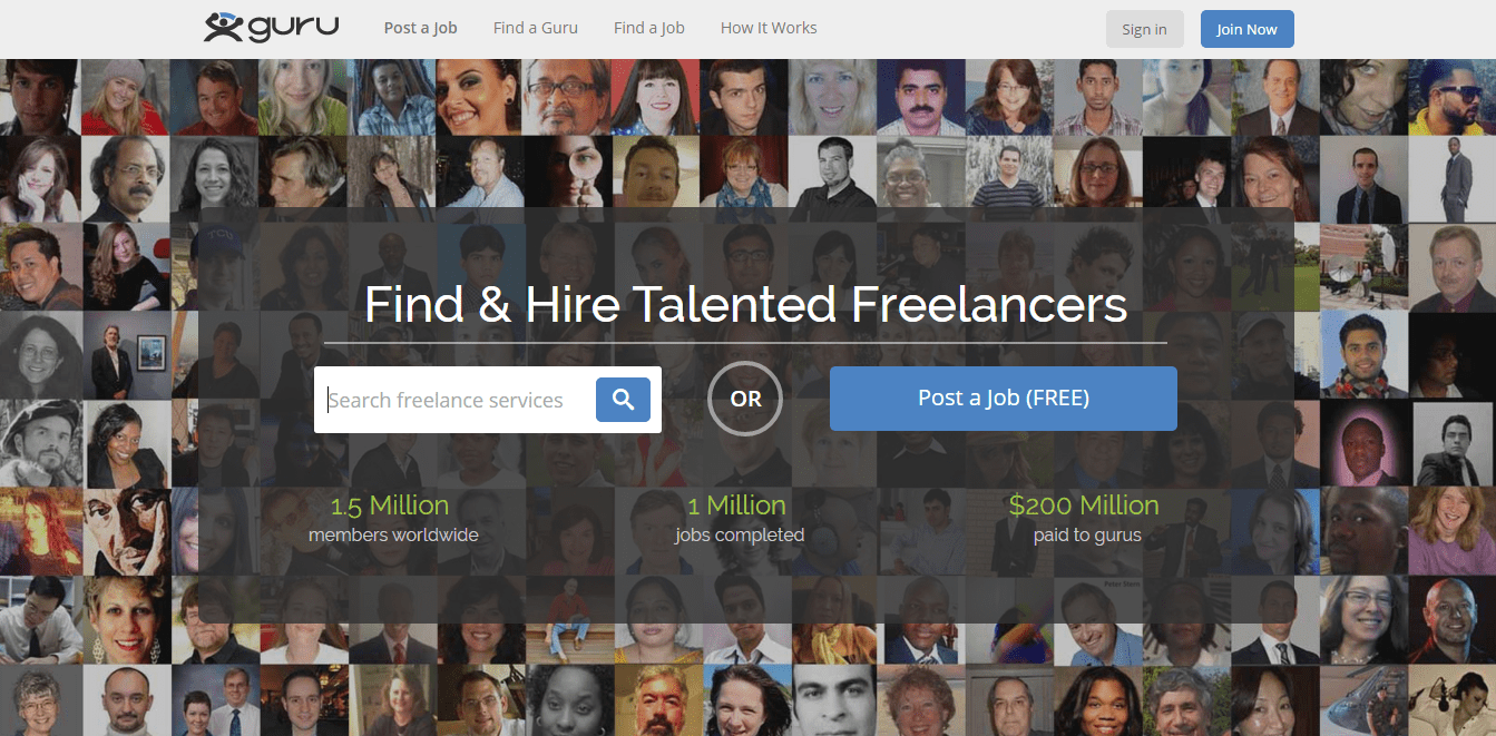 Guru.com is another huge freelance marketplace that links companies and freelancers. It offers companies to find freelance workers for hired work. This platform directly connects 160 different fields of employees and businesses. Guru.com promotes creative, technical and business projects and so delivers opportunities for freelance programmers, translators, writes, game developers, engineers, attorneys and so on.
