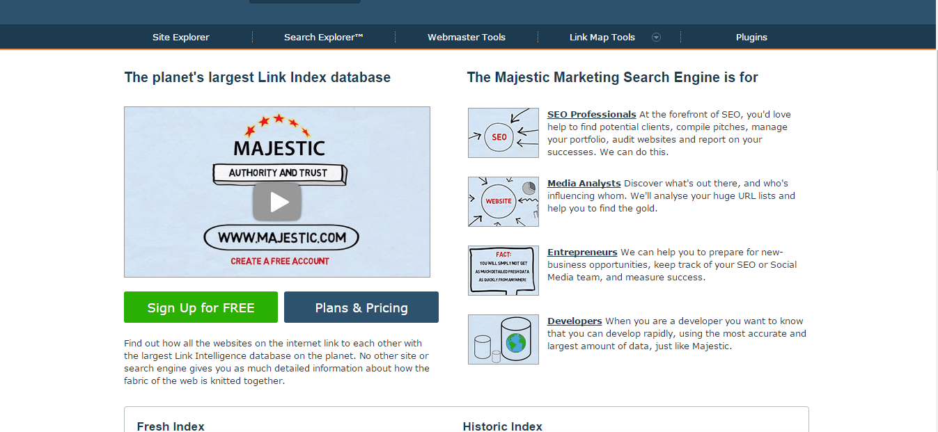 MajesticSEO is a link analysis tool. Just like with Open Site Explorer, It can be used to analyze your own site or gain information on your competitors. What sets it apart is that it has two indexes, one of which is updated daily and the other once a month, allowing you to get the most recent data. MajesticSEO also shows you the strength and trustworthiness of sites, which can be very useful when planning a linking strategy. One interesting feature (with a fun name) is the Link Profile Fight that gives you a graphic comparison of different websites.