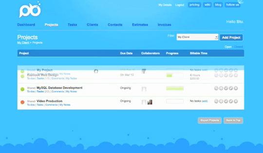 Project Bubble:- Project Bubble is an online project management solution to help both your teams and clients become more productive, transparent and time efficient. The colorful, visual interface allows you to create tasks with traffic light statuses to assign priority accordingly. You can drag and drop tasks as priorities shift and change. You can also create sub-tasks within tasks to further organize projects at a more detailed level.