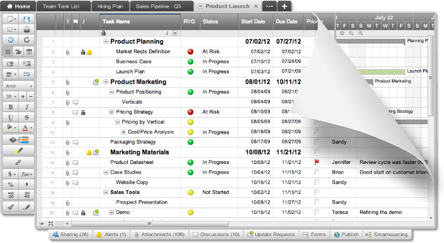 Smartsheet:- Smartsheet is an online project management and collaboration software for businesses of all sizes. It has an intuitive spreadsheet-like interface that helps increase team productivity of not only project management teams but also that of sales, marketing, IT and others. It has powerful features for managing and tracking projects, tasks, customer information, sales pipeline, marketing campaigns, event schedules, product development, human resources and many other business processes, all with a simple and familiar spreadsheet.