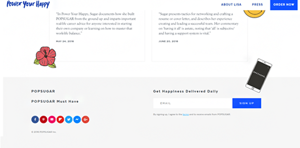 The call-to-action should tell customers as to why they should click on it. As simple as that. If there is nothing beneficial to the customers, they would not be excited to go an click the button. What I like about Emailmonday, an independent email marketing consultant, is the shape of the form. Unlike most forms which are either rectangular or square shaped, this form is spherical with the face of the business owner. The copy messages readers the true value of subscription – ‘Subscribe, because the really good email marketing tips are in the newsletter’. ‘You can Unsubscribe anytime, but you won’t even want to’ – that’s the faith you have in yourself.